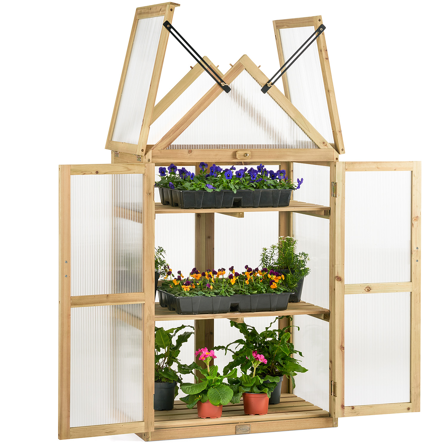 Cold Frame Garden Greenhouse Wooden Polycarbonate Lean To Growhouse