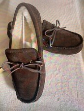 Fenland Mens Sheepskin Moccasins UK 9/10 Tan Genuine Lined Slippers Suede BNIB