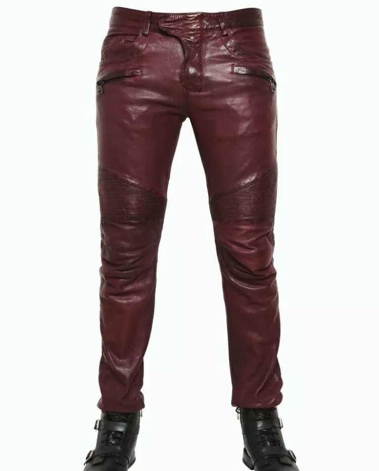 Men’s genuine cowhide hot style pants cow leather night club burgundy trousers