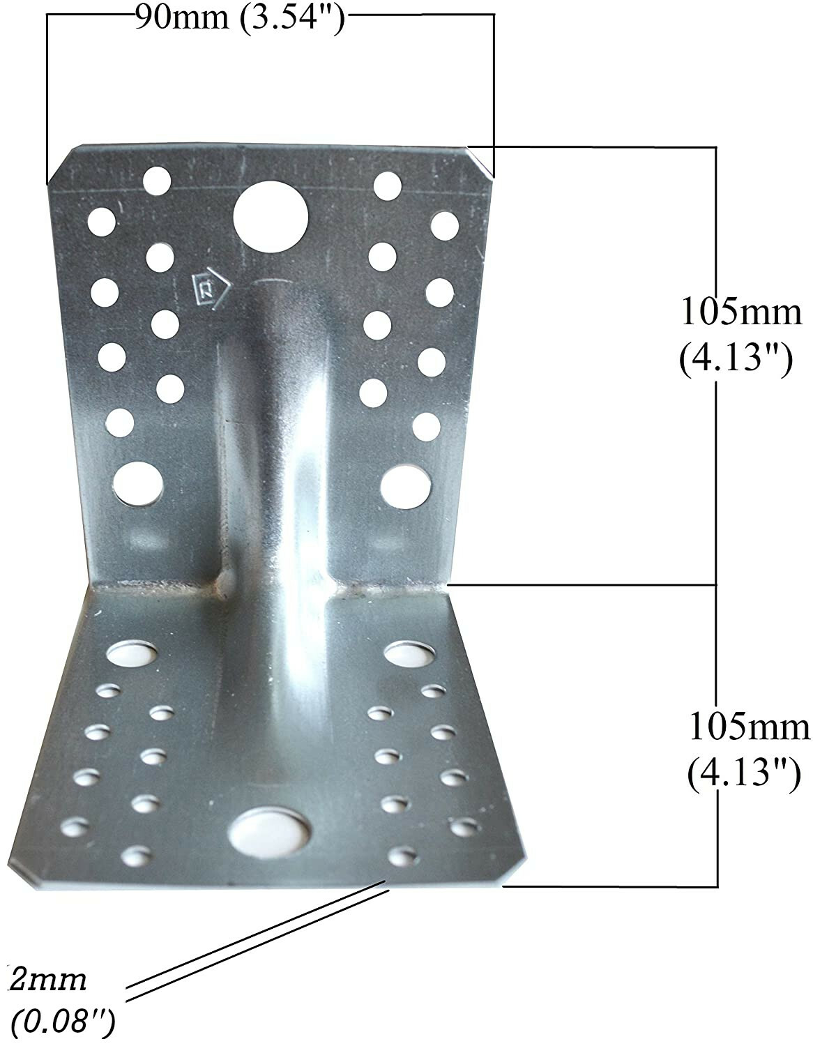 Heavy Duty 2mm Thick Zinc Plated Reinforced Corner Angle Bracket Galvanised