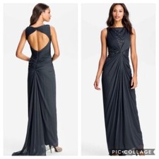 Adrianna Papell Ruched Embellished Gown Dress Purple Sz 8 $189