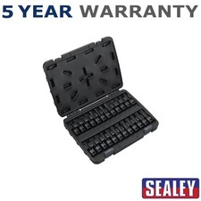 Chrome Molybdenum steel impact socket bits. Phosphate finish for added corrosion resistance. Suitable for use with any impact tool. Contents: Hex; 5, 6, 7, 8, 10, 12, 14, 17mm, TRX-Star*; T30, T40, T45, T50, T55, T60, T70, T80, Spline; M5, M6, M8, M10, M12, M14, M16, M18. Length: 78mm. Supplied in storage case. Lifetime guarantee*. Model No. AK56000 .