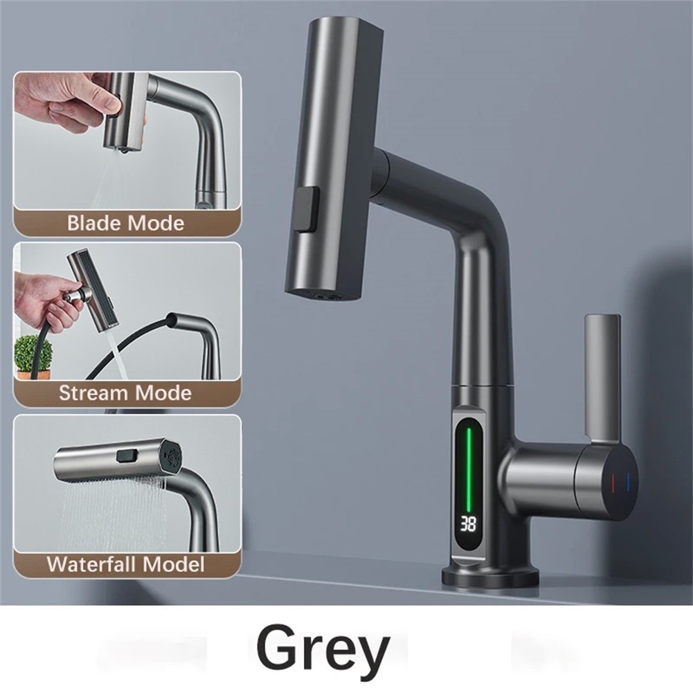 Versatile Design: This waterfall kitchen faucet features a 360° swiveling design that allows for easy maneuvering and access to every corner of your sink, making it good for various cleaning tasks in the kitchen or bathroom.