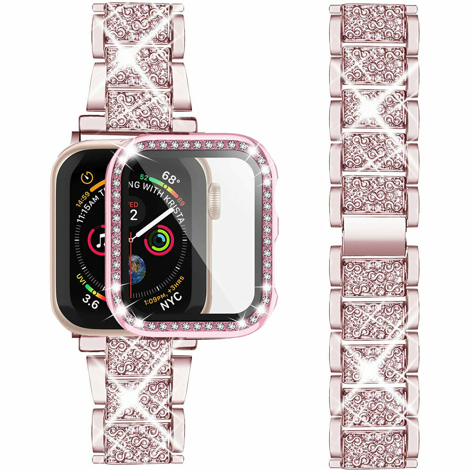 Bling Metal iWatch Strap+Full Screen Case For Apple Watch Series 11 10 9 8 7 6 5