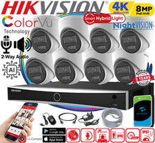 HIKVISION 4K 8MP ColorVu CCTV Kit NVR 2-Way Audio IP67 AI PoE Security System UK