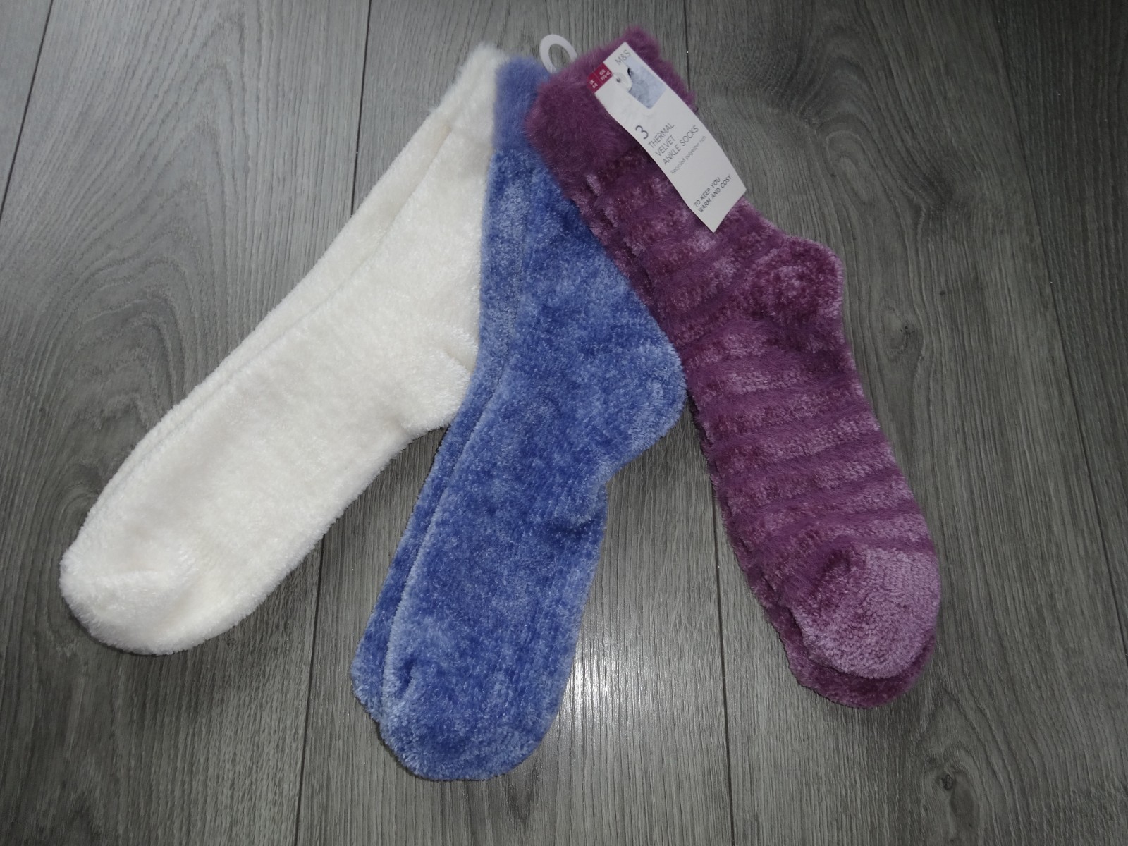 3 PK OF MARKS & SPENCER VELVET THERMAL SOCKS. 85% POLYESTER 16% POLYAMIDE 1% ELASTANE. UK SIZE 6-8.