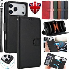 Removable Wallet Case Leather Flip Cover for iPhone 16e/15/14/13/12/11 Pro Max
