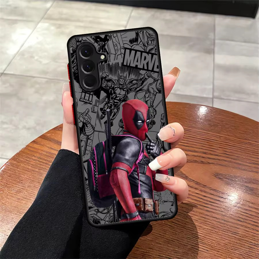 These Marvel phone cases feature designs inspired by the popular superhero Deadpool. Made to fit many Samsung Galaxy A-series models, including the A21, A22, A23, A24, A25, A26, A31, A32, A33, A34, A35, A36, A51, A52, A53, A54, A55, A56, A71, A72 and A73.