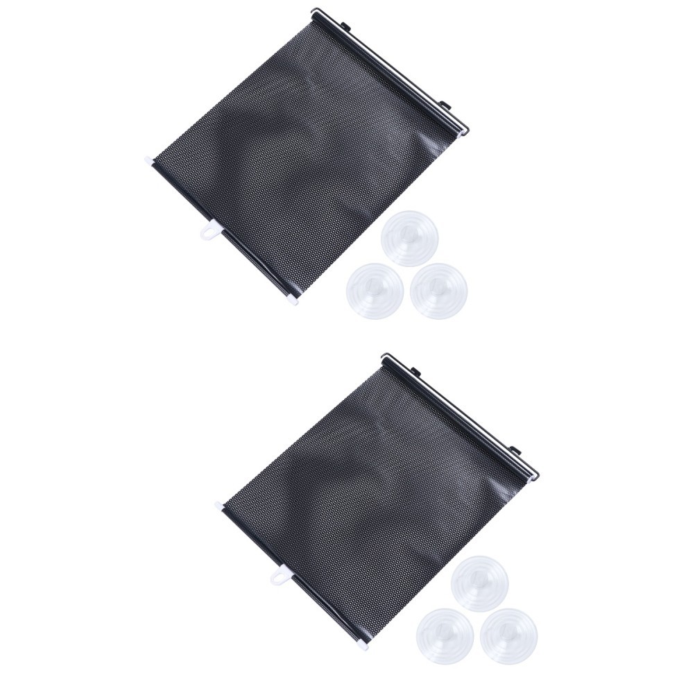 2 Pcs Vehicle Window Roller Retractable Sun Shade Curtain Black PVC Material
