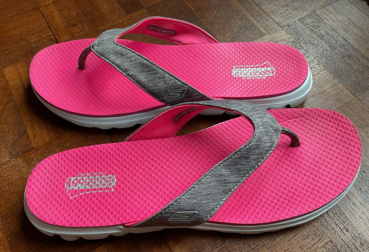 SKECHERS ON THE GO FLIP FLOPS SANDALS GREY ~ PINK LADIES UK SIZE 7