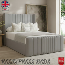 OTTOMAN STORAGE BED PANEL PLUSH VELVET UPHOLSTERED BED FRAME- WINGED HEADBOARD