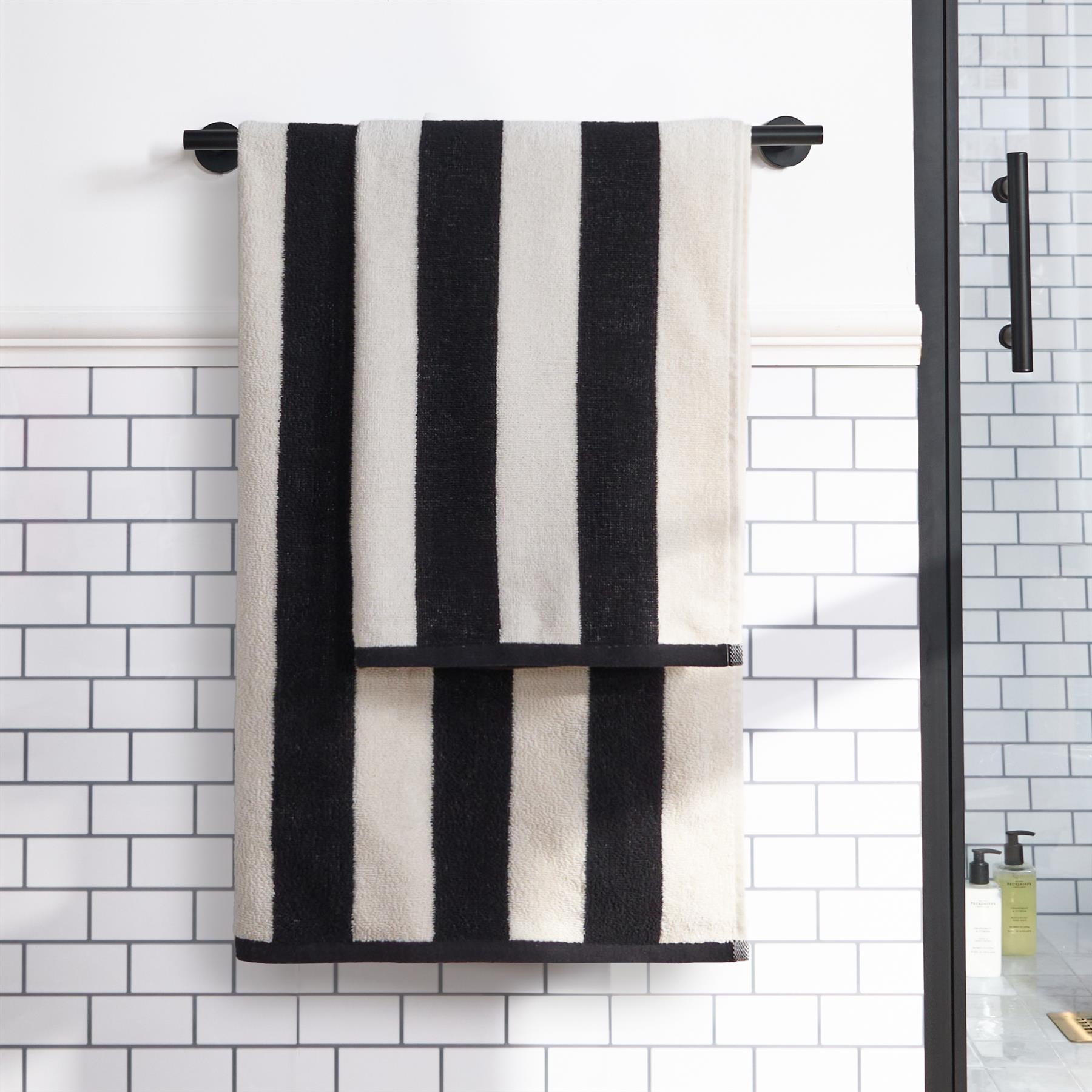 OHS Stripe 100% Cotton Bath Hand Towel Hotel Luxury Shower Soft Absorbent