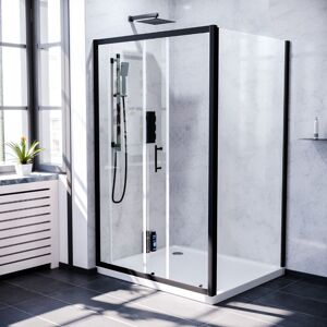 Description Made from 1 mm aluminium profile and coated in a stunning chrome finish along with stainless steel handles. The glass panels on the shower enclosure are created from 6 mm tempered clear glass. The elegant shower enclosure has a 20 mm wall adjustment for when the walls are slightly out. Key Features - Quality finish ensuring long term durability - Power shower proof - Passed multi waterproof tests - the best waterproof guarantee - Highly durable and easy to clean glass coating - Strong build push release double rollers for smooth operation - Tray includes a flat underside, making installation and leveling simple Specifications Sliding Door - Width: 1100mm - Height: 1850 mm - Concealed design sliding shower enclosure cubicle .