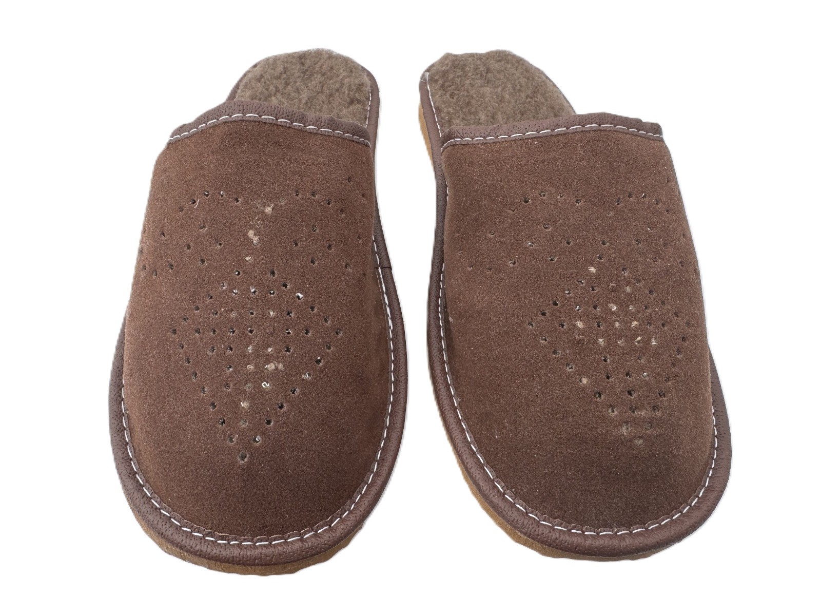 Men’s 100% Suede Leather Slippers With Sheepskin Wool Lining And Closed Toes.