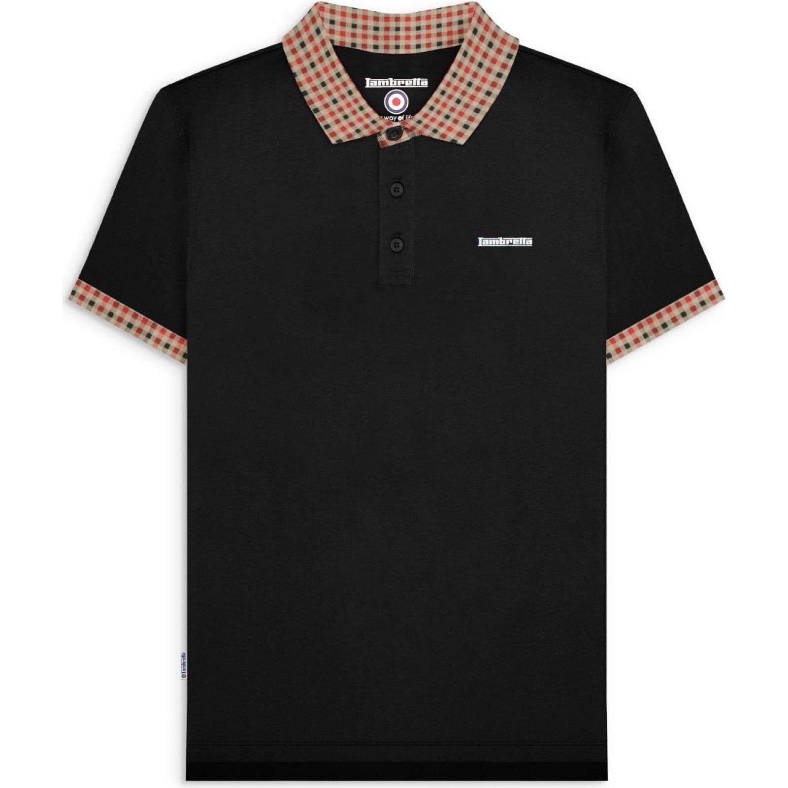 Lambretta Mens Gingham Collar Short Sleeve Polo Shirt