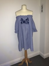Blue Vanilla - Off The Shoulder Floral White And Blue Floral Summer Dress Size S