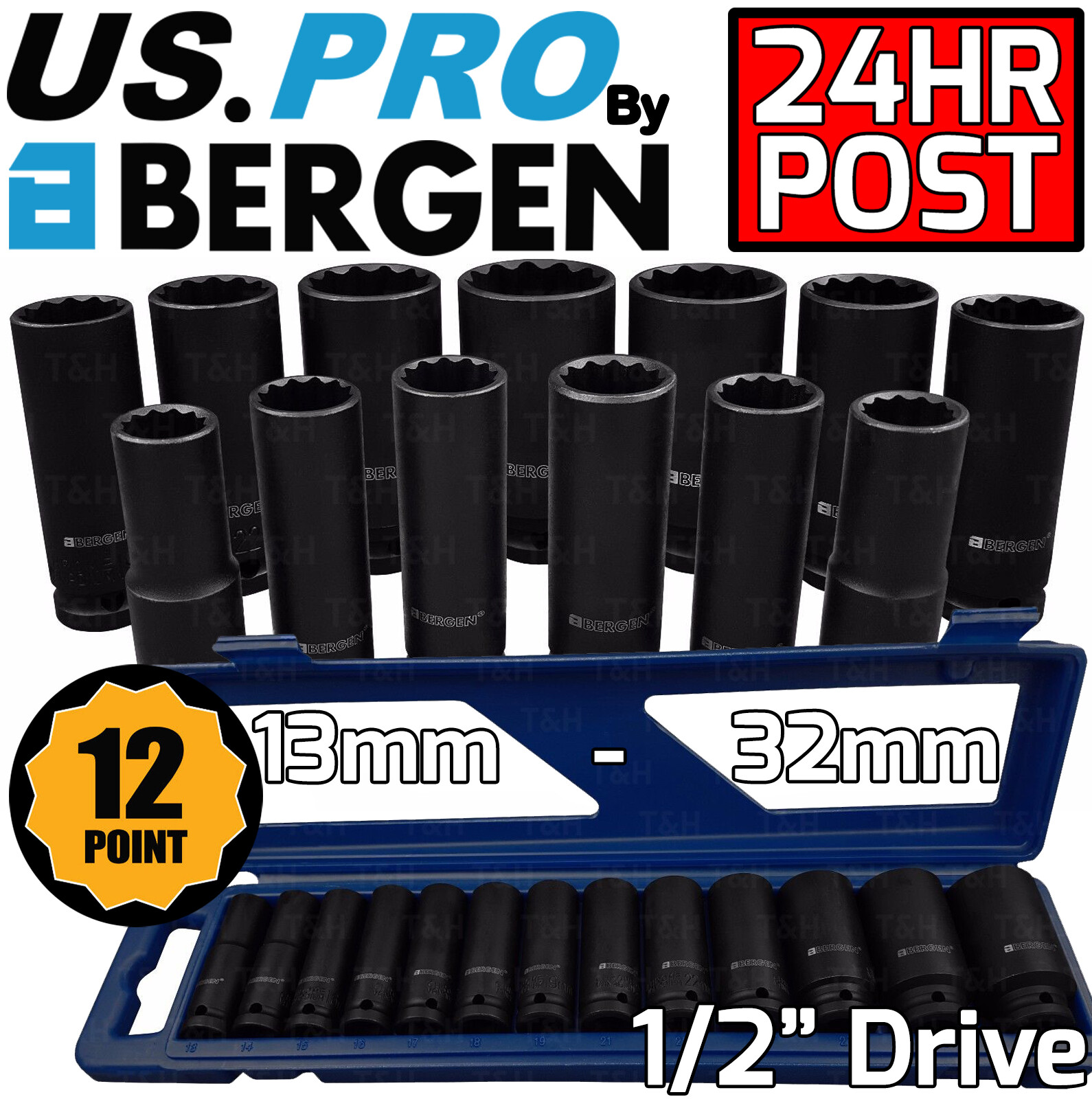 US.PRO 12 Point DEEP IMPACT Socket Set 1/2" Drive Long Reach Impact Sockets 13pc