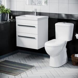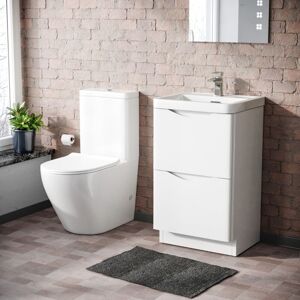 This beautiful 500 mm white gloss freestanding basin vanity cabinet and WC Toilet comes complete with a high-quality basin. The back to wall toilet pan and seat is an ultra-modern designer shape, this toilet is made from white ceramic, covered with a high gloss finish which makes the toilet stand out.