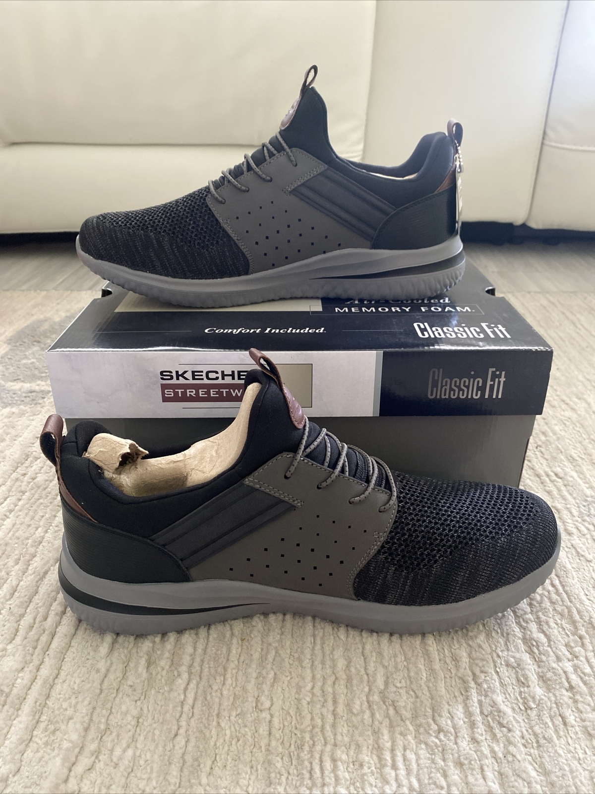 Elevate your casual wear with these Skechers Men's Delson 3.0 CICADA Sneaker Shoes in Gray. Perfect for travel, activewear, and casual occasions, these sneakers feature a solid pattern and are made with a mesh upper material and foam insole material for added comfort. The rubber outsole material provides durability and traction, while the cushioned and memory foam features ensure your feet stay comfortable all day long. These shoes come in a UK Shoe Size of 11.5 and a US Shoe Size of 11.5, with an EU Shoe Size of 45.5 and an AU Shoe Size of 11.5. The Skechers Memory Foam product line ensures you get the best quality for your money. Don't miss out on this opportunity to add these stylish and comfortable sneakers to your shoe collection.