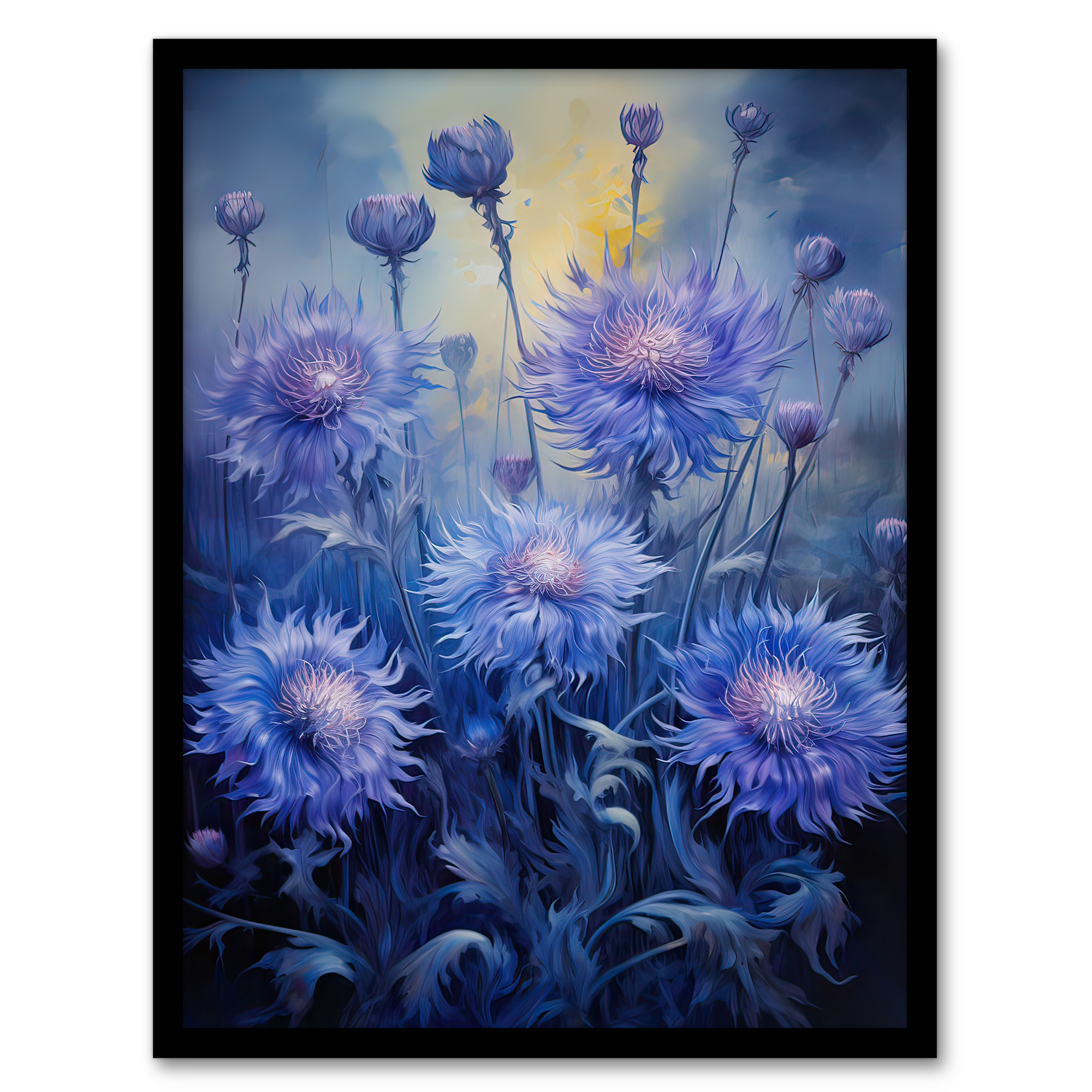Ethereal Cornflower Meadow in Blue and Purple Wall Art Poster Print Picture