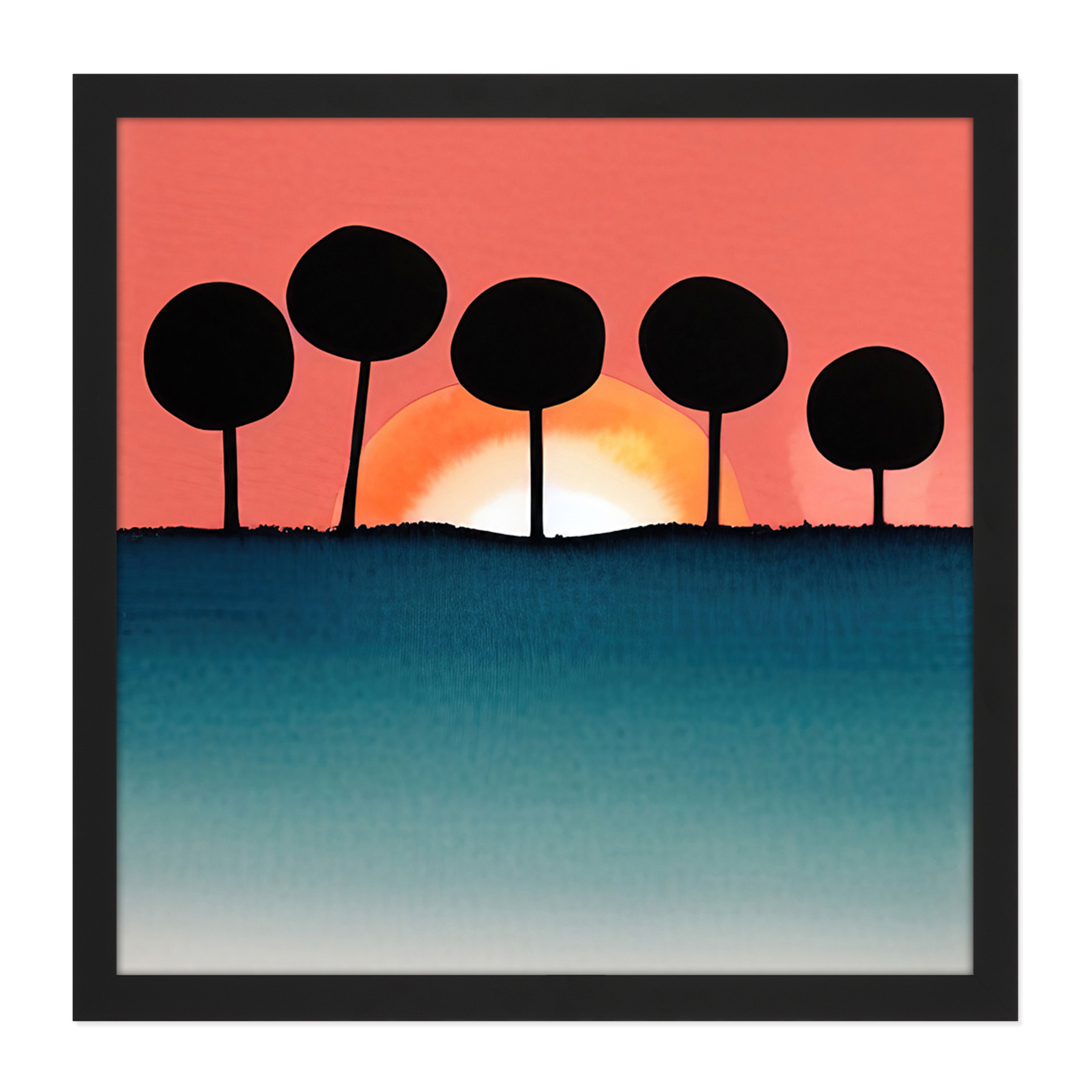 Tree Boho Sunset Landscape Watercolour Square Frame Print Picture Wall Art