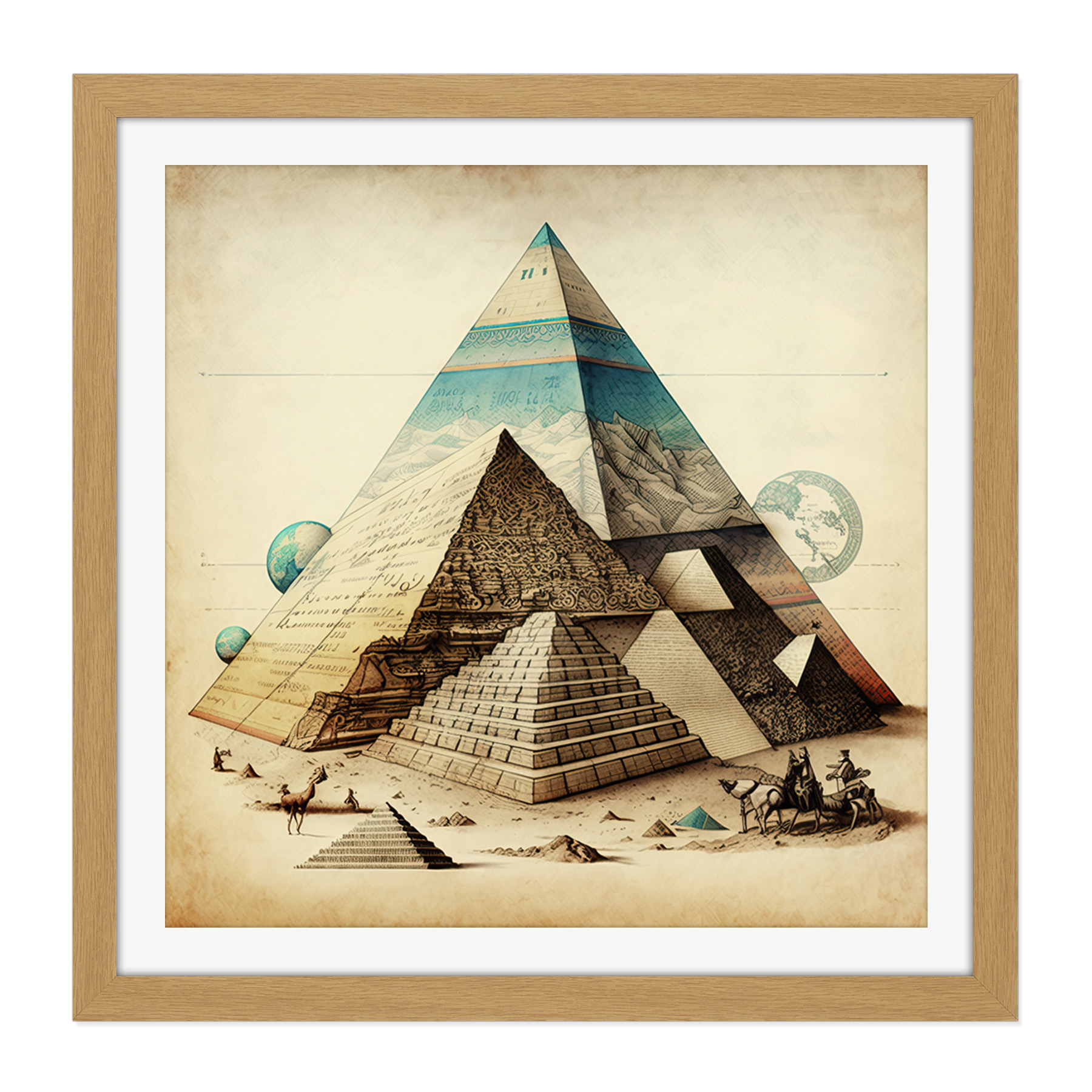 Fantasy Worlds Great Pyramids Egypt Plan Style Poster Square Framed Wall Art