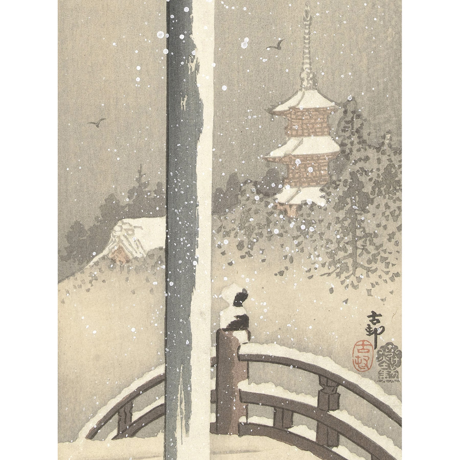 Ohara Koson Torii Gate In The Snow Bird Japanese Wall Art Print Framed 12x16