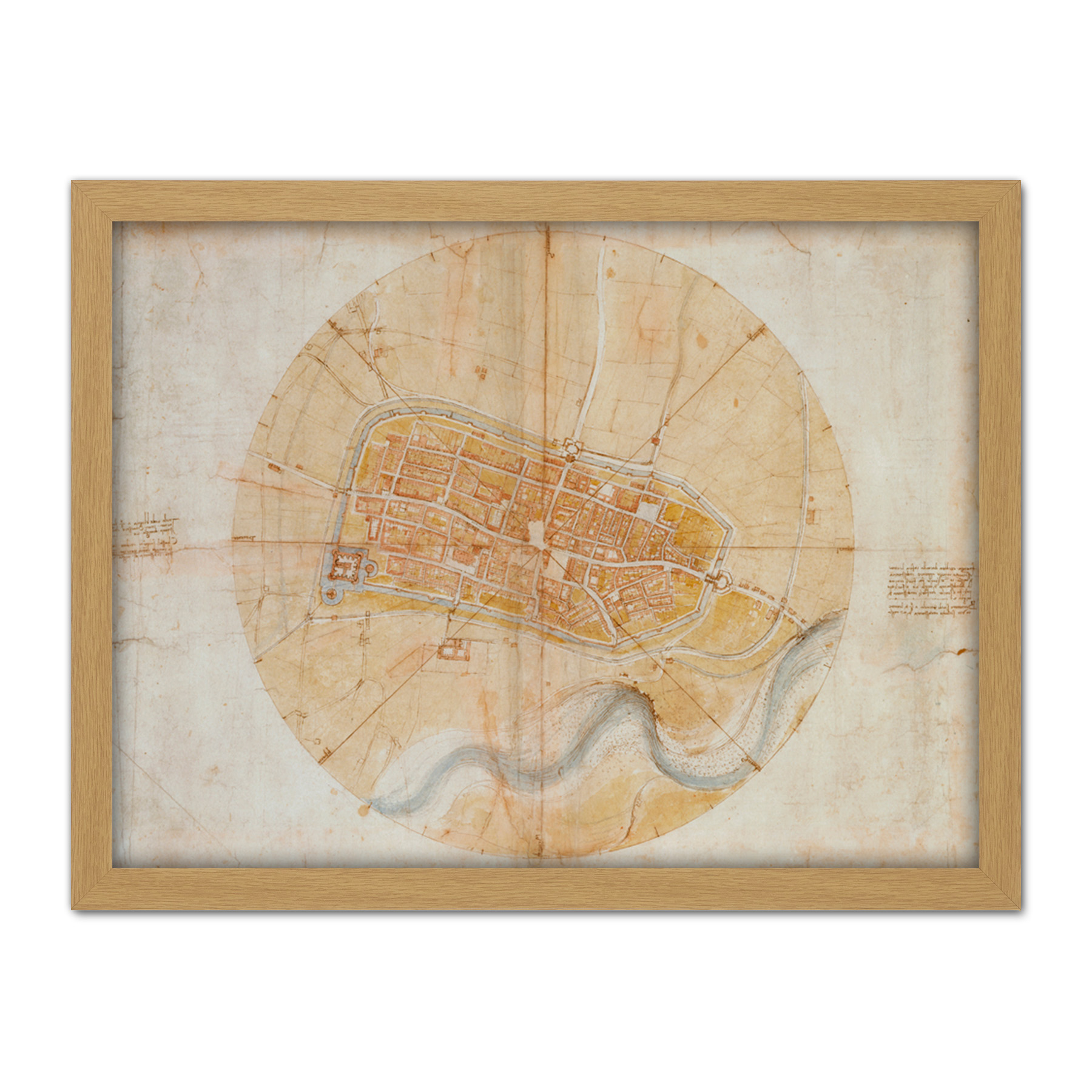 Leonardo Da Vinci Plan Of Imola Plainting Framed Wall Art Print 18X24 In