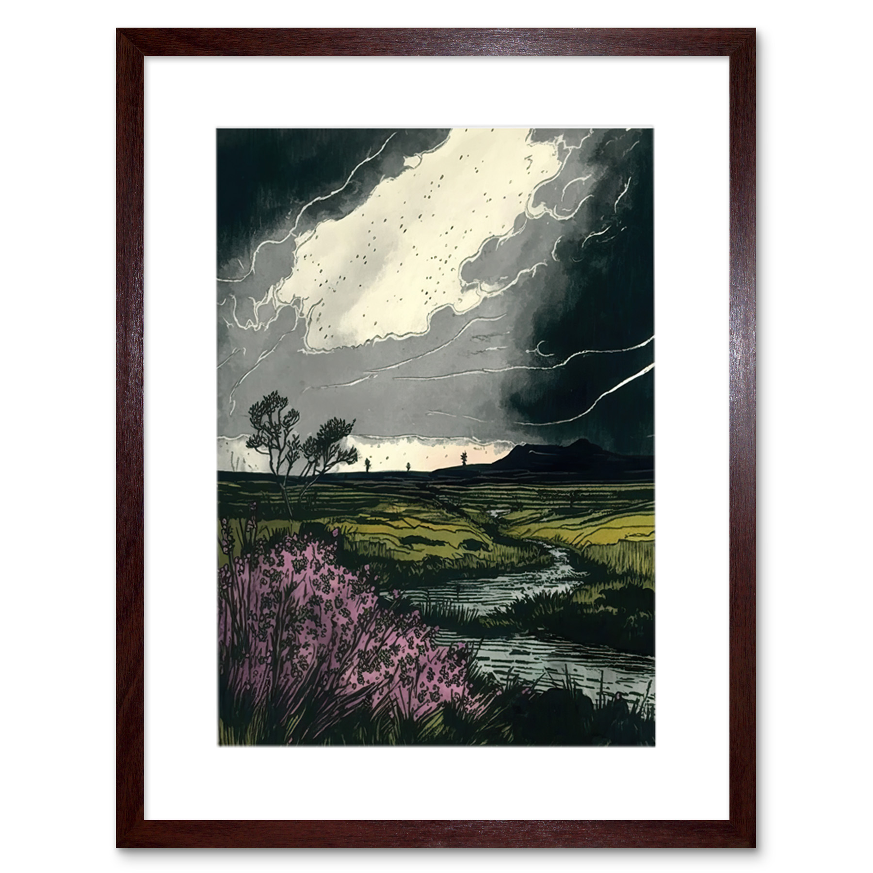 Storm Clouds at Scottish Meadow with Heather Shrub Framed Wall Art Print 12X16