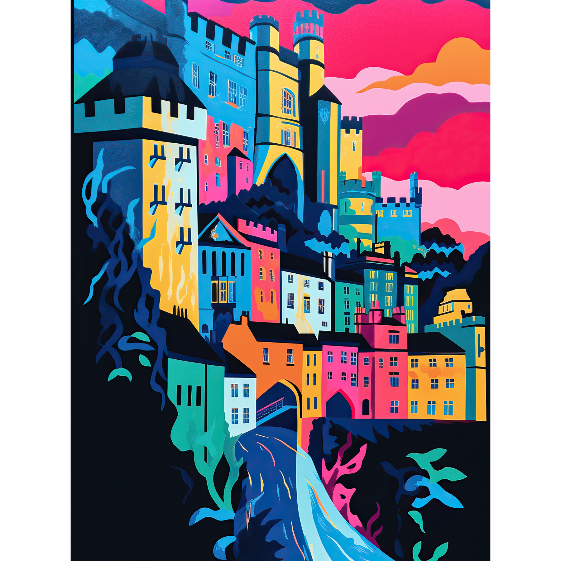 Nottingham City Vibrant Abstract Pop Art Cityscape Framed Wall Art Picture 12x16