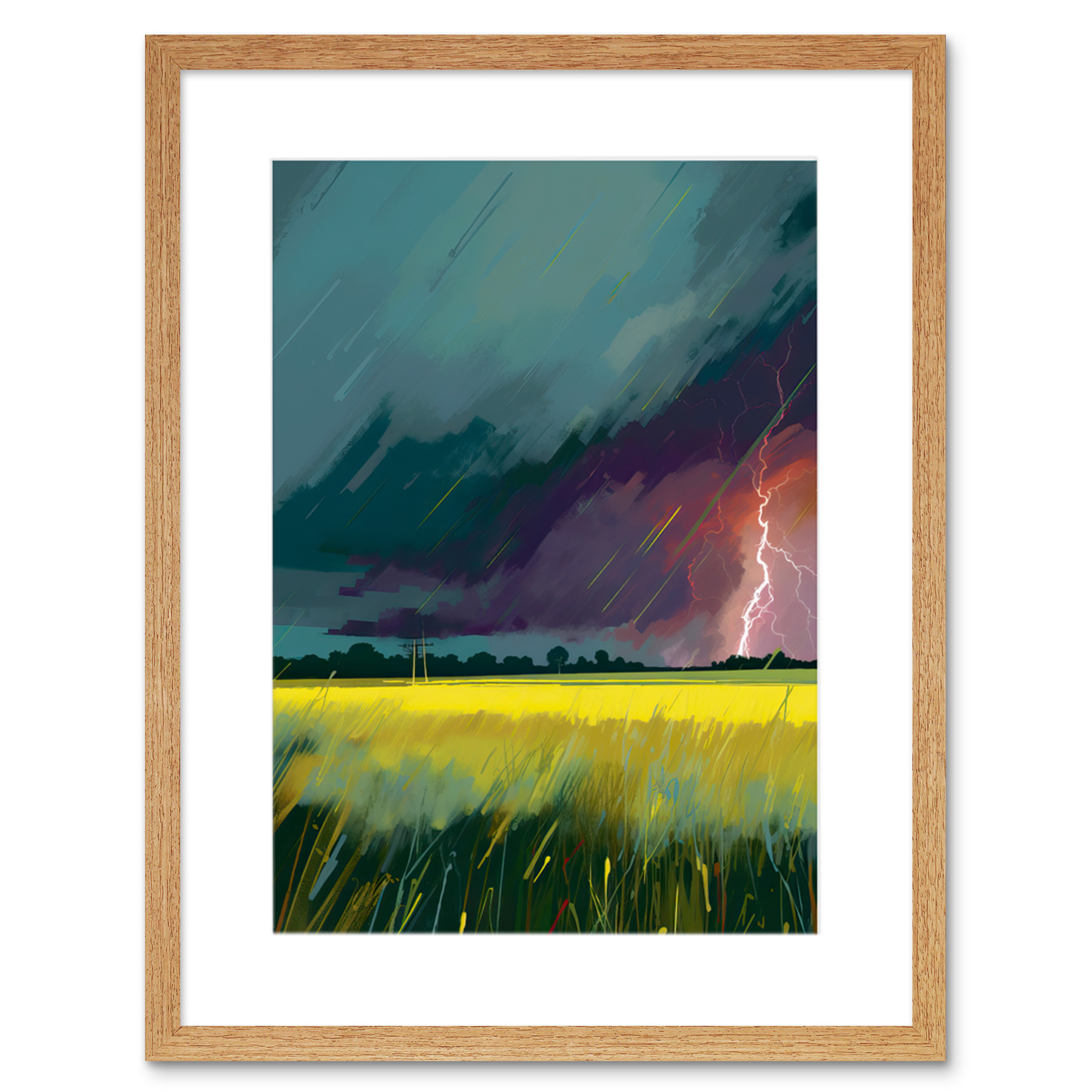 Lightning Strike Over an Open Countryside Field Framed Wall Art Print 9X7 In