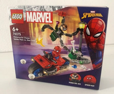 Band New Sealed box The LEGO Super Heroes Motorcycle Chase set (76275) features Spider-Man and Doc Ock in an exciting showdown. With a total of 77 pieces, children aged 6 and above can recreate the action-packed chase between the two iconic characters. This LEGO set, released in 2024, comes in a box packaging and includes the necessary accessories for a thrilling playtime experience. The item dimensions are 197mm x 136mm x 154mm, making it a convenient size for young fans to handle and play with.