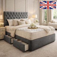 Chesterfield Divan Bed Storage Fabric Buttons Plush Velvet Plush Charcol