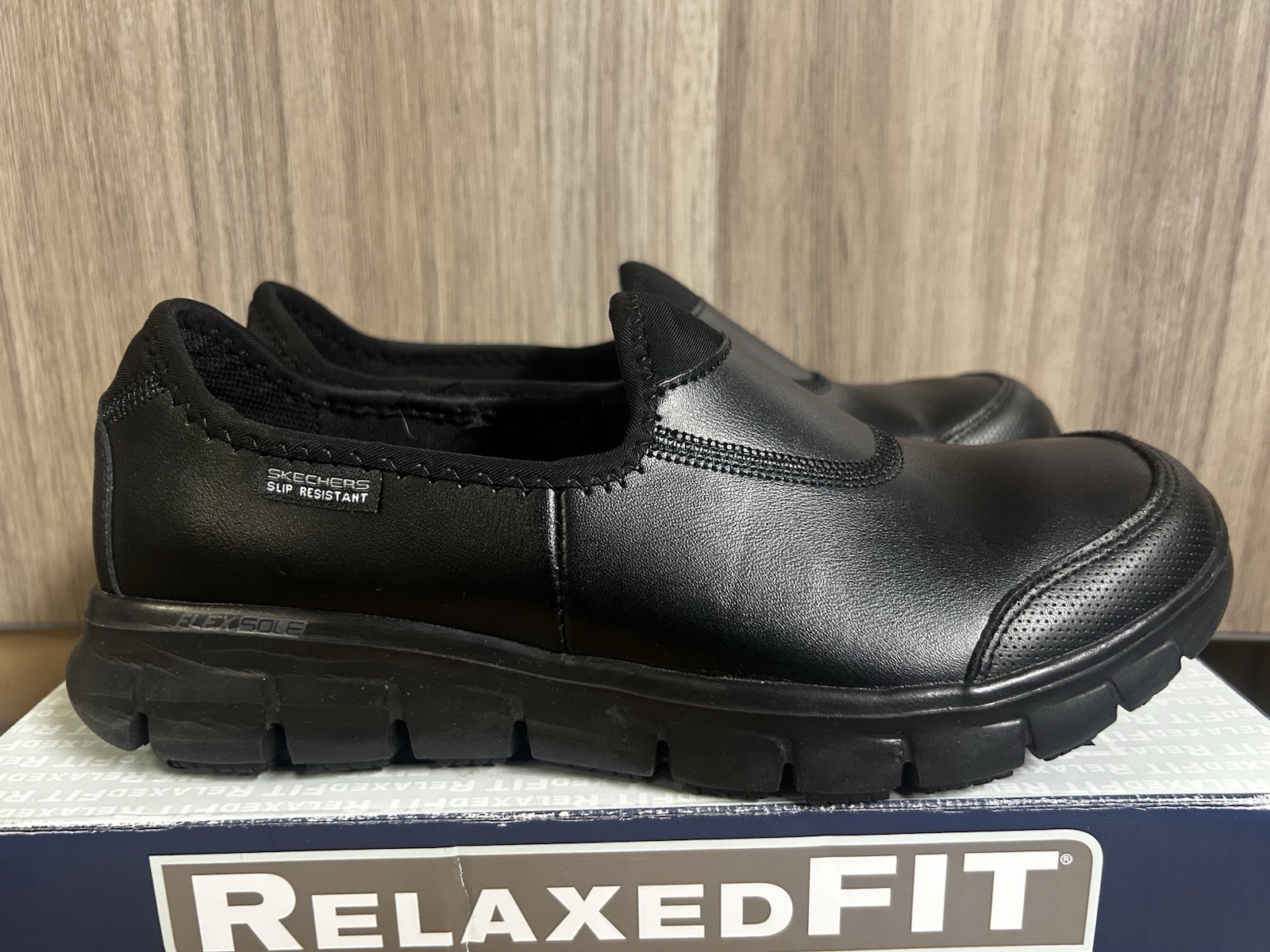 FREE UK SHIPPING Skechers Sure Track slip on shoe with memory foam. Non slip sole Relaxed fit for a roomier comfort fit at toe and forefoot Laceless fit “A comfortable favorite gets serious with surefooted protection in Skechers Work™ Relaxed Fit®: Sure Track. This laceless fit work design features a smooth leather upper with a Skechers Memory Foam™ insole and slip-resistant outsole.”
