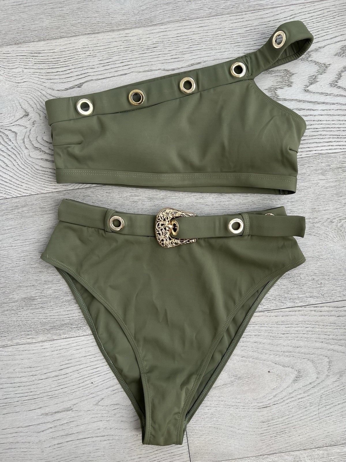 This bikini set in olive green is perfect for adding a pop of colour to your beach or poolside look.