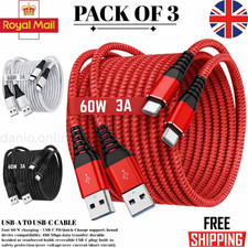 3 Pack Heavy Duty USB Type C Charging Cable Braided Fast Phone Long Lead 2m 1m
