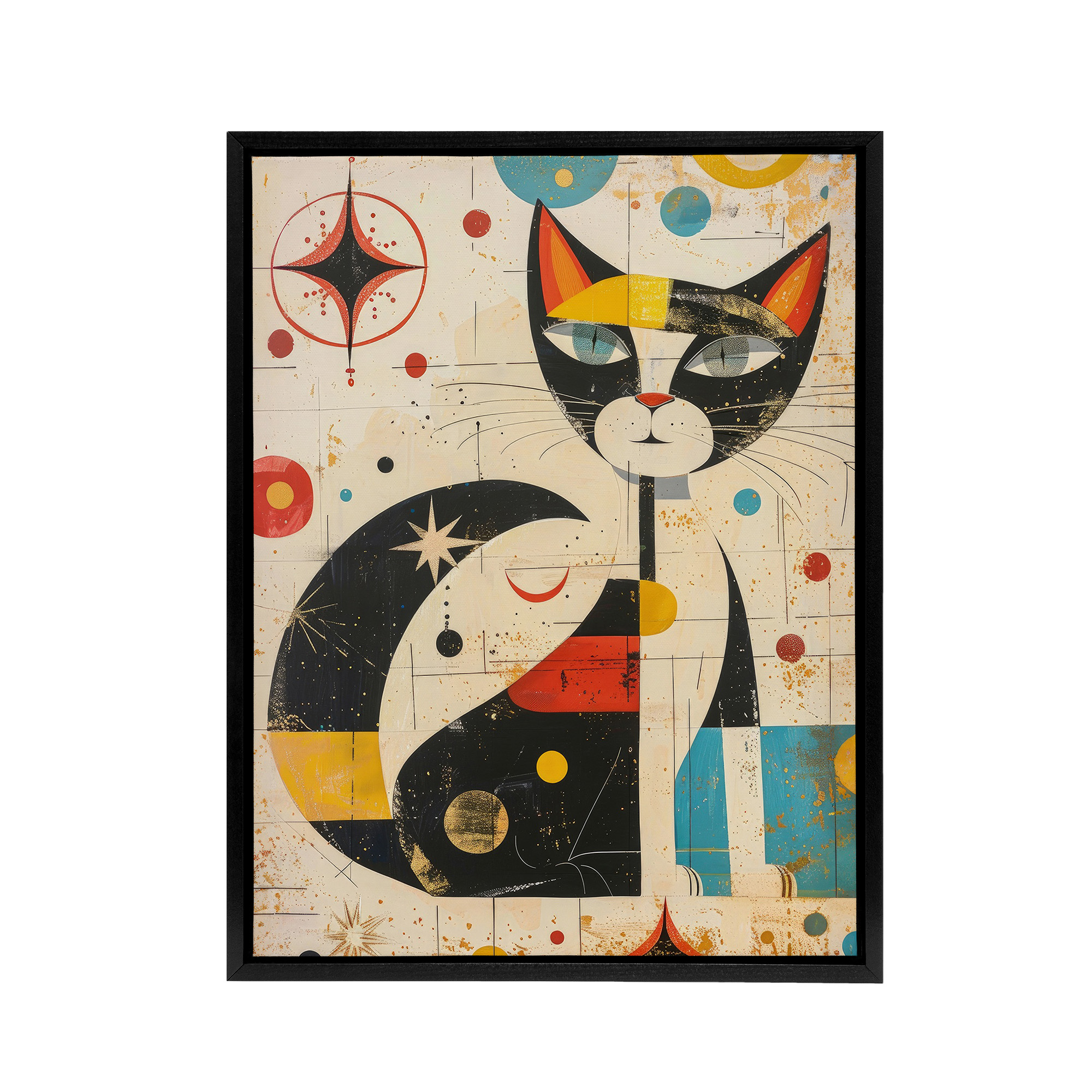 Abstract Mid Century Modern Atomic Cat Framed Canvas Wall Art Print