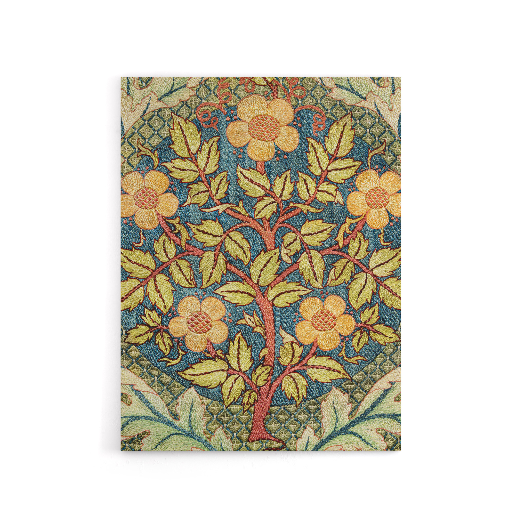 Rose Wreath Embroidery Pattern Canvas Wall Art Print William Morris - This intricate William Morris embroidery pattern features a circular wreath of roses surrounded by leafy detail. Premium Cotton Canvas – Printed on luxurious, fine-weave cotton canvas using fade-resistant archival inks for deep, lasting colour and crisp detail.