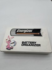 The Vintage Energizer Bunny Battery Organizer Case with Tray is a practical and nostalgic storage solution for batteries. Made of durable plastic, this original Energizer product features a tray and compact dimensions of 10 inches in length, 6 inches in width, and 1 3/4 inches in height. Perfect for organizing and storing batteries in a clean and tidy manner, this vintage battery storage box is both functional and charming.