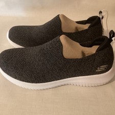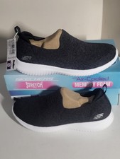 These Skechers Ultra Flex trainers for women are designed for ultimate comfort and style. The slip-on style makes them easy to put on and take off, while the Skech-Knit upper fabric ensures a breathable and stretchy fit. The cushioned and lightweight design, featuring memory foam and synthetic outsole material, makes them ideal for a variety of activities such as walking, running, and cross-training. The black colour with logo accents gives them a sporty and sleek look, perfect for casual wear in any season. These trainers are a must-have for women looking for both performance and fashion in their footwear.