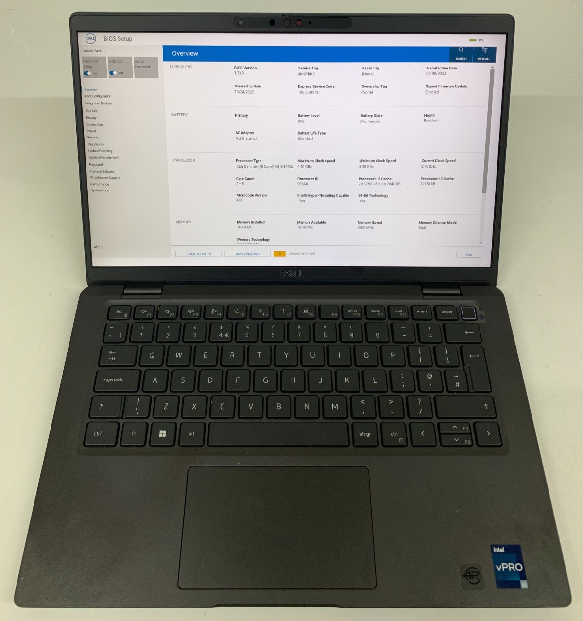 Model: LATITUDE 7430. Keyboard: GBR - UK English (QWERTY). It is intended for reference only. Grade B - Good condition: Minor signs of use and in good working order. May show light scratches or minor visual imperfections.