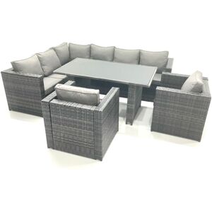 This deluxe 6 piece rattan sofa dining set is a great addition to patio or garden, made of high quality PE rattan and durable galvanized steel. Dark grey mixed PE Rattan. Low Maintenance ,Removable Cushion Cover And Easy Move To Different Place.Pls Keep the Cushion Indoor Or put on With Rain Cover When Not In Use.