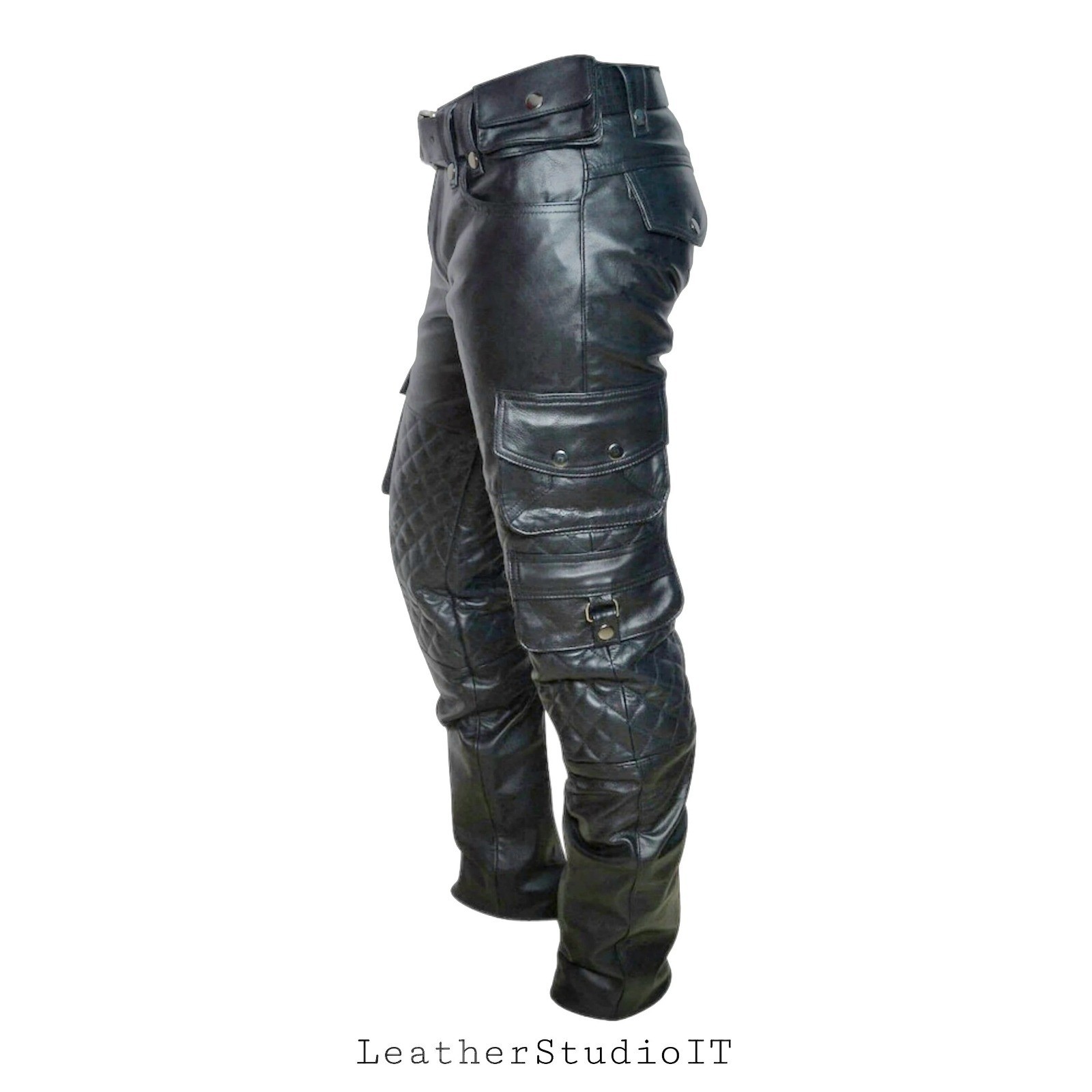 Crafted by Leather Studio, these slim fit black cargo trousers are a seamless blend of style and utility for the discerning gentleman. Made from genuine lambskin leather, these pants are designed to offer a flattering, slimming silhouette without compromising on comfort. The classic black hue ensures they're versatile enough to pair with any wardrobe, while the durable leather material speaks to their longevity. Function meets fashion with features that include multiple pockets, providing ample storage for essentials. The regular size type ensures a comfortable fit for a range of body types, while the refined cargo style maintains an air of sophistication. These trousers are a timeless addition to any man's attire, marrying the elegance of leather with the practicality of cargo design.