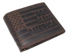 Men's Distressed Leather American Flag Bifold Brown Embossed Leather Wallet NIB