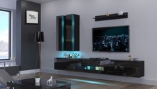 Colour & Finish Gloss door and Matt Black Wall Cabinets & Oak Wotan Wood Effect Base Units. Design Style Floating / Wall-Mounted Modular Unit. CONTEMPORARY AESTHETIC : The sophisticated combination of Gloss Black and Oak Wotan provides a stunning focal point for any modern living space.