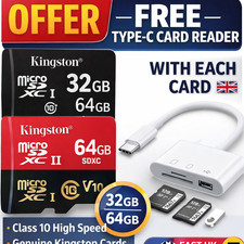 High Speed Kingston Micro SD 5GB - 512GB Memory Card SDHC SDXC C10 with Adapter