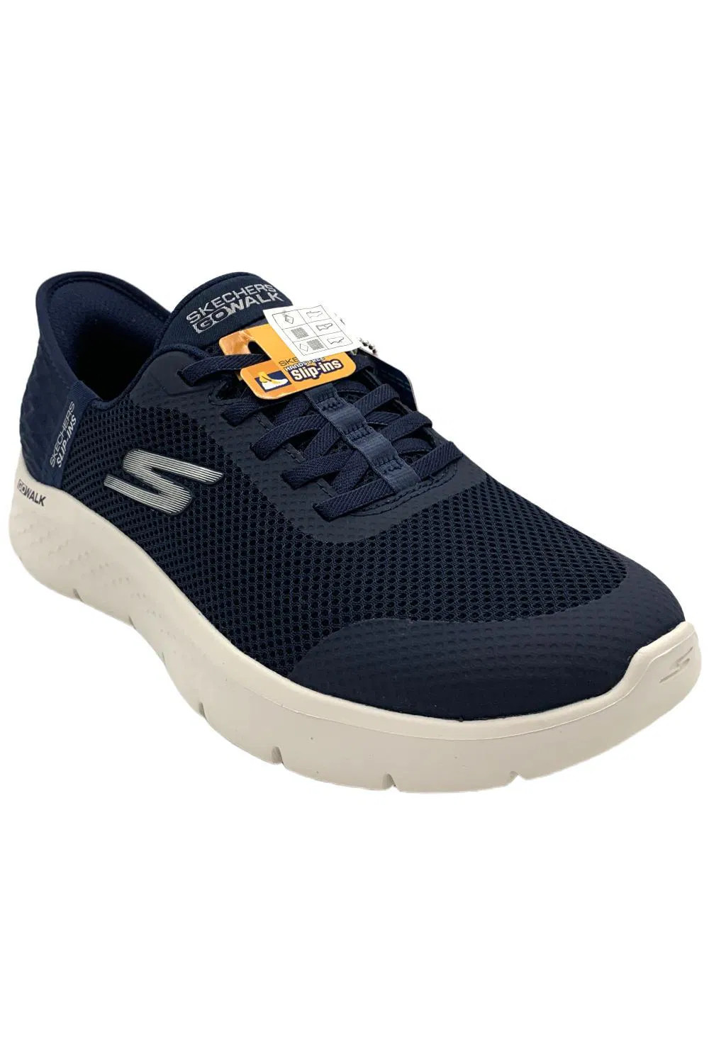 Mesh fabric & synthetic upper Slip-on with stretch laces Round toe Padded collar with Heel Pillow™ Textile lining Removable Skechers Air-Cooled Memory Foam® insole Lightweight ULTRA GO® midsole 1.25" heel Synthetic traction sole with Flex Pillars™ Imported