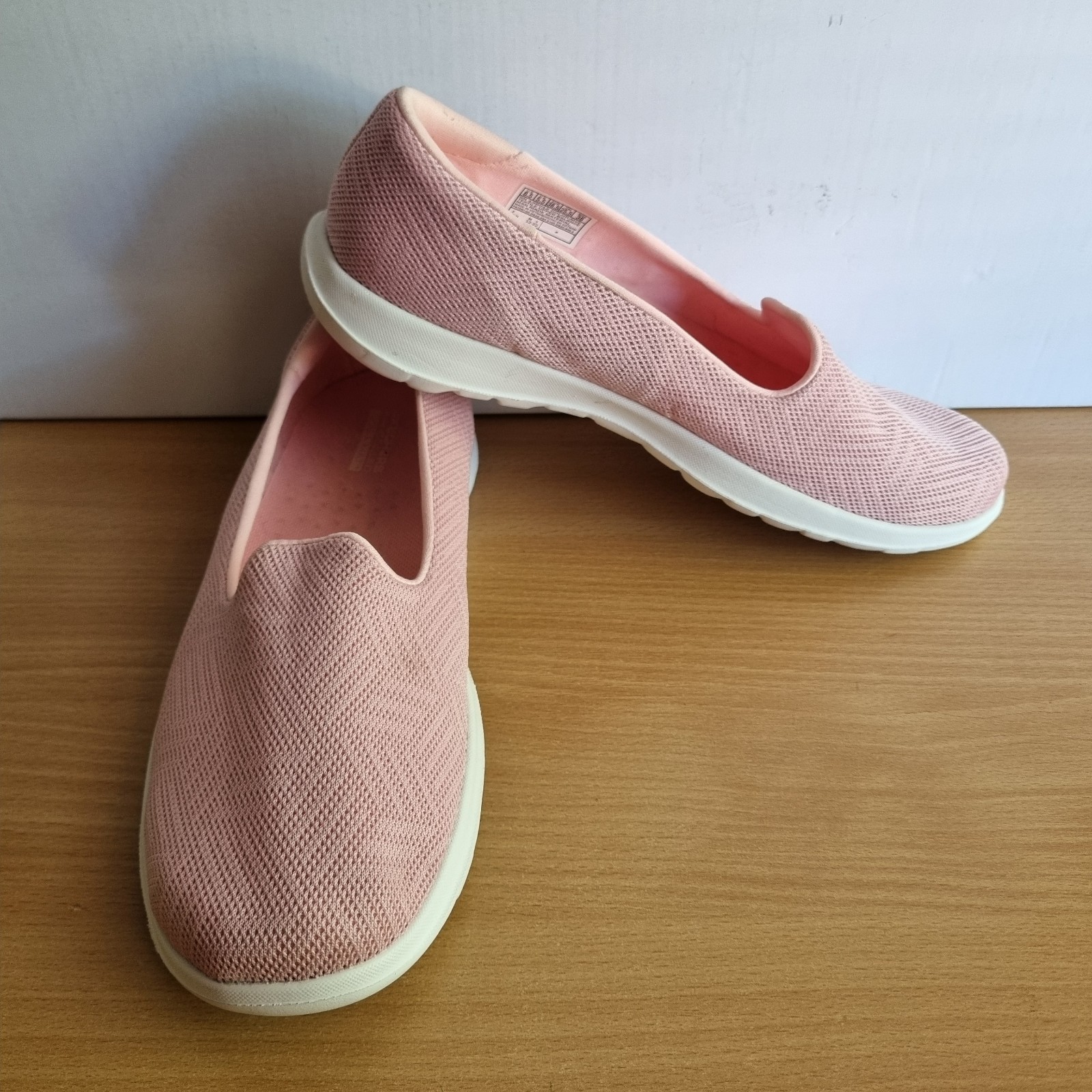 Trainers used a couple of times only so in like new condition as shown in the pictures. The Skechers Go Walk Lite Shoes in women's size 5.5 are stylish slip-on walking trainers in a vibrant pink colour.
