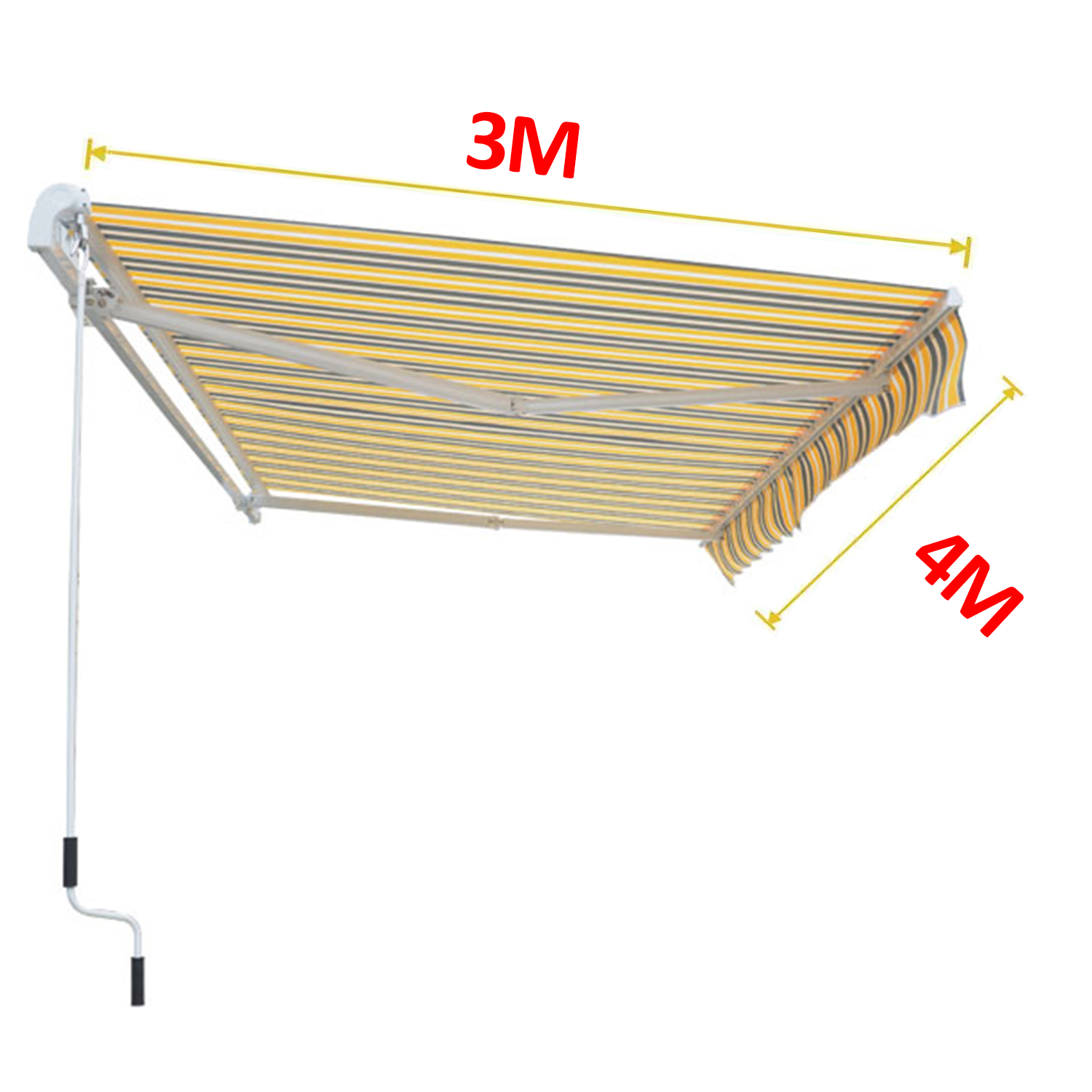 Size: 2.0x1.5m, 2.5x2m, 3x2.5m, 3.5x2.5m, 4x3m. Yellow-Stripe Manual Awning Garden Sun Shade Retractable. -The awning has to be fixed to concrete wall. -Side covers on the roller support makes your awning elegant looking.