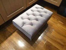 A lovely, Soft velvet upholstered stool, deep padded. Finished with polished stainless steel legs. Can be used for a variety of purposes, Foot stool, seat stool in the bedroom, office, lounge. Soft, Silver/Grey Velvet Fabric and Polished Stainless Steel Legs.